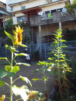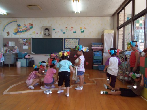 穴のあいたベルトにお花紙を差し込んで、セロテープで止めました。