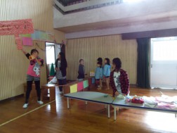 体育館に楽しい遊びのコーナーがたくさん準備されていました。