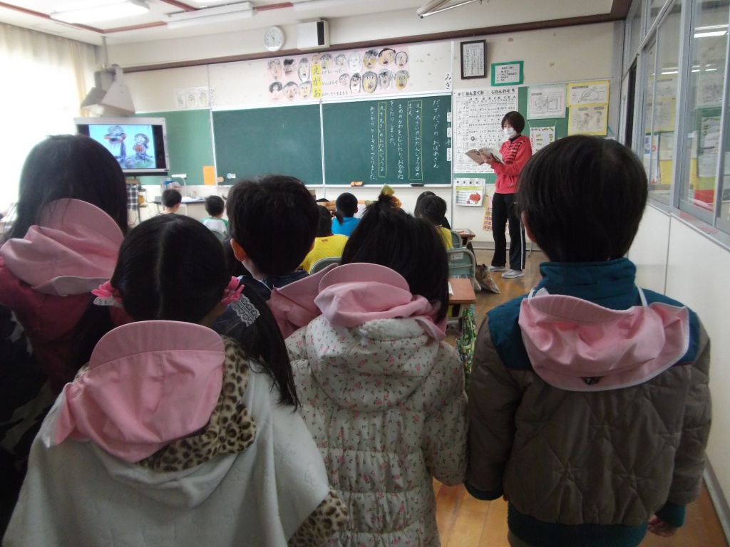 ☆今日は、年長児が聖徳保育園のおともだちと一緒に銭座小学校を