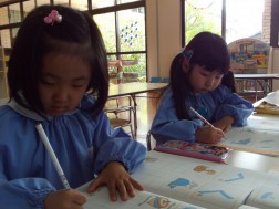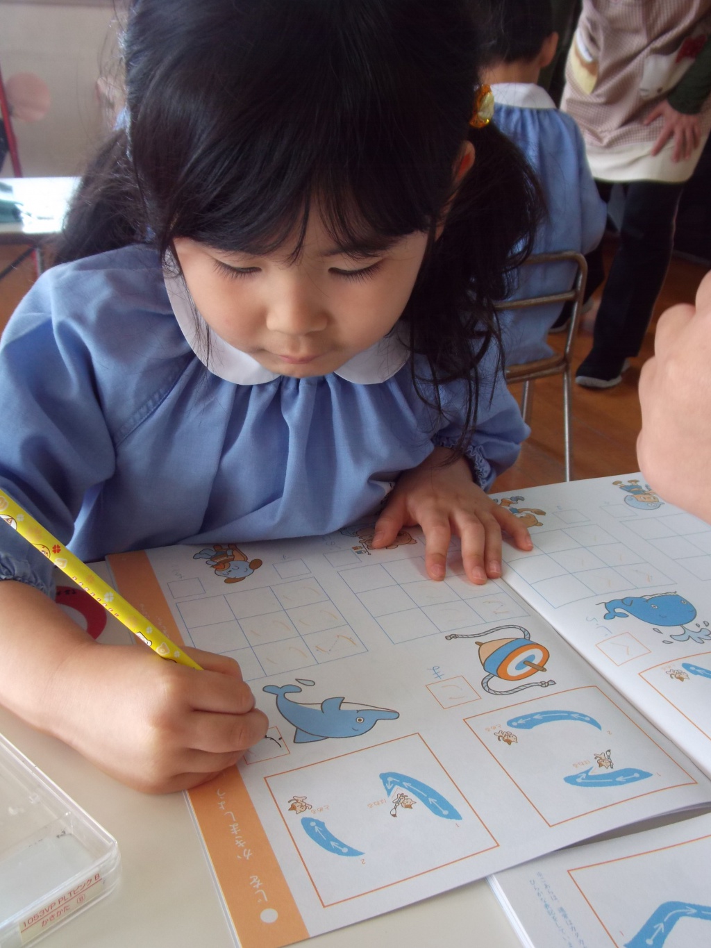 もう書けていた子も正しい筆順から覚えます。お勉強は年長になった証。