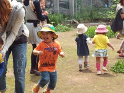 今日は、外に出ました。かけっこをしたり、お母さんにギュ~~ウをしたり・・・