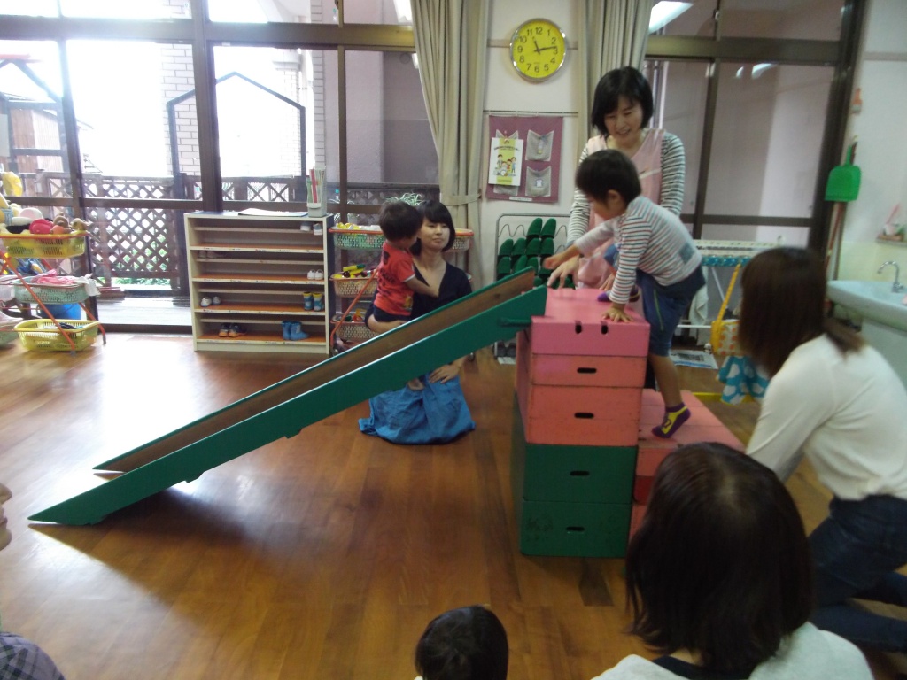 ・今日は雨が降っていたので、お部屋の中で“すべり台”