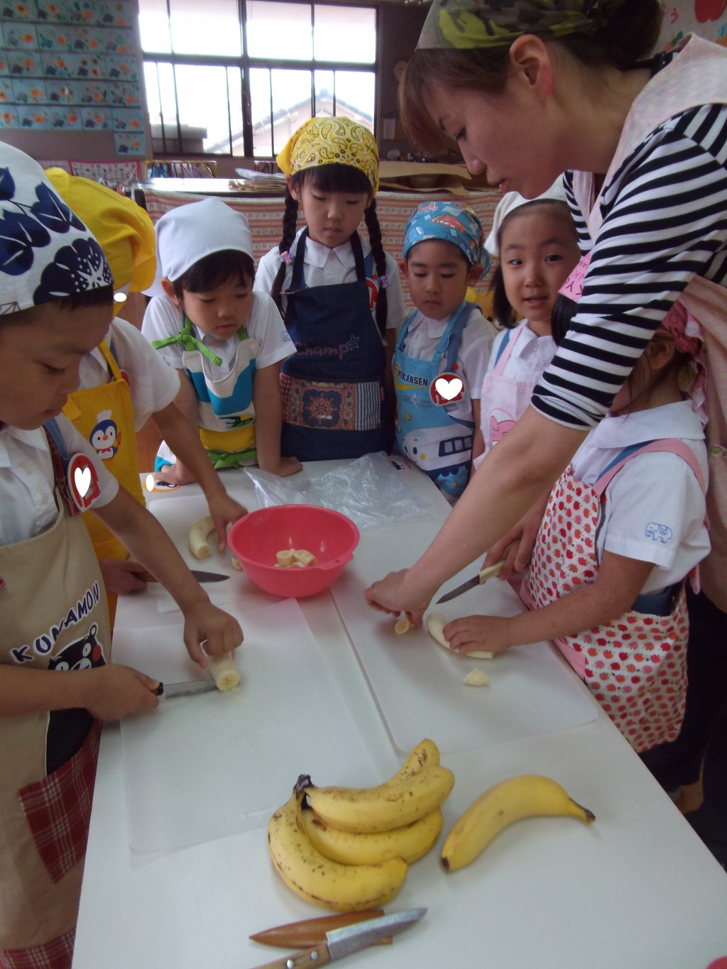 年長児がバナナを切りました