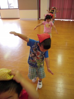 バランスを取りながらお手玉を頭にのせて、上手に歩けました(^^)v