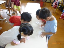 白い紙で魚(一人三匹)を作り、競争したり吹き落としゲームをしました(^^)/
