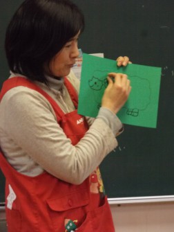 パピー 「緑色の方に糊をつけましょうね」