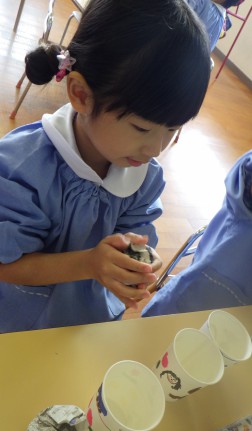 紙コップにマーカーで好きな絵を描いて、かき氷のカップにしました。