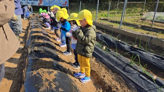 きりん、ぞう、らいおんぐみさんがじゃかいもの種芋を植えてきましたよ。