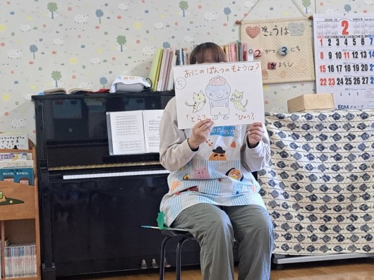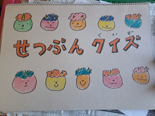 まずは、節分についてのお勉強!クイズ形式で楽しく、節分に関することをお勉強しました(*^o^)/