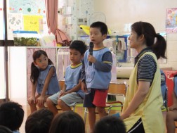 今日は、8月・9月生まれのお誕生日会があり、みんなでお祝いしました。