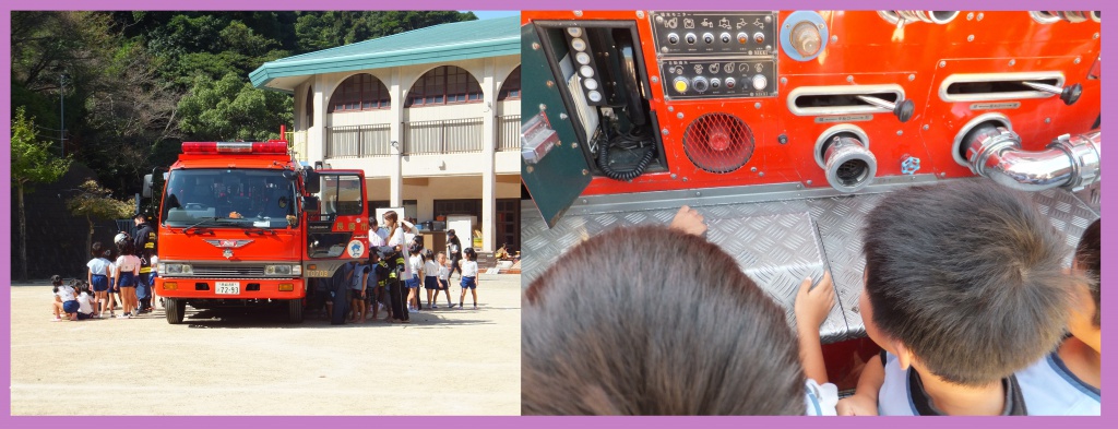 ↑ あこがれの消防車、間近でみられてうれしかったね。