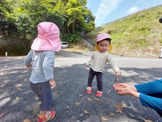 落ち葉を見つけて拾ったり、降らせたりして遊びました(*^^*)