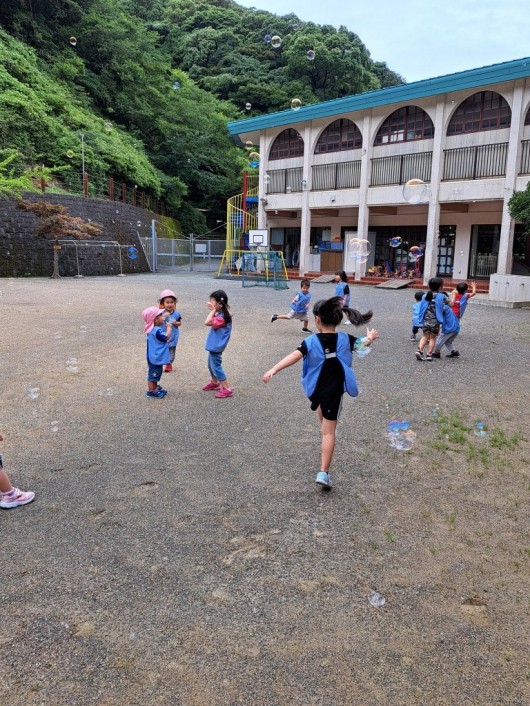 シャボン玉を追いかけながら元気いっぱい走り回っていました(^O^)