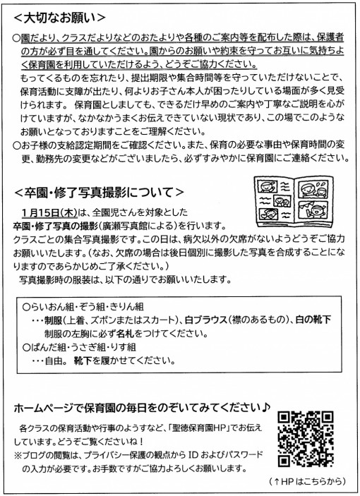 1月の園だより